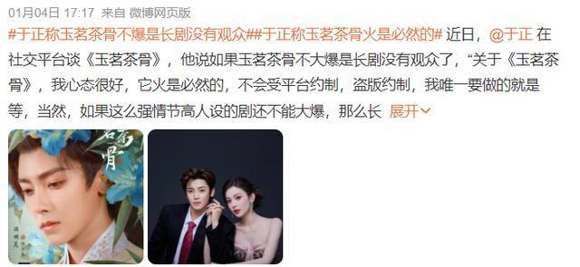 《玉茗骨茶》正在热播,这部剧定档前,于正喊话:《玉茗骨茶》一定会大爆特爆,但这部剧播出之后,热度和关注度并不高,然后于正表示:《玉茗茶骨》不爆是长剧没有观众。