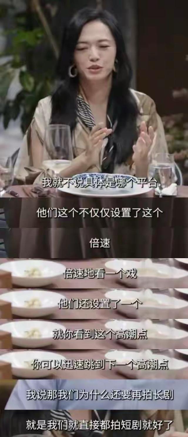 在关注姚晨的时候,她的一段视频吸引网友们的关注,在这段视频中,姚晨表示:我就不说是哪个平台,他们不仅仅设置倍数,还设置一个,就是你看到这个高潮点,可以快速地跳到下一个高潮点,我说为什么我们还拍长剧,直接拍短剧就好了,永远在高潮点上。