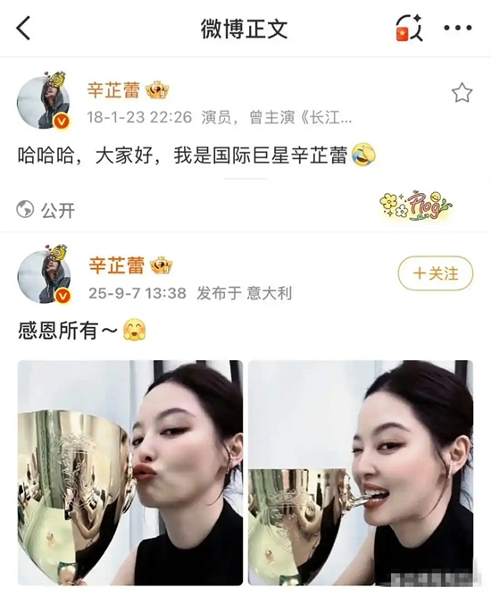 而真正让她被贴上“野心家”标签的,是2018年那条狂放的微博:“哈哈哈,大家好,我是国际巨星辛芷蕾。” 彼时的她尚未大红,这句话被不少人嘲笑狂妄,可只有她自己知道,这不是吹牛,而是写给未来的承诺。她在《演员的诞生》中直言“想红”,不掩饰对成功的渴望,把所有质疑都化作演戏的动力。