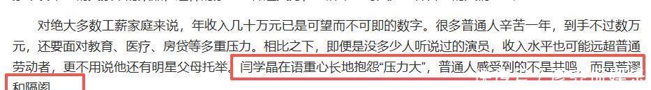 风波一步步失控看完这些艺人的窘境,再说回到事情的源头,看看闫学晶到底是怎么一番话,能有这么大的后劲儿。那天闫学晶坐在自家的大房子里,对着手机镜头,一脸的忧心忡忡。她聊的不是别的,正是自己32岁儿子的困境,她说儿子林傲霏和儿媳妇,小两口一年收入加起来也就不到四十万。