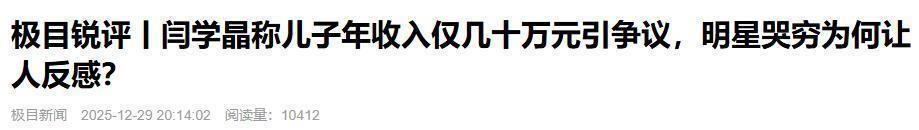 比如极目新闻就发表了一篇名为《明星哭穷为何让人反感?》的锐评。文章并没有简单地批评她本人,而是深入地分析了这种现象背后的逻辑。文章指出,明星们所谓的穷和苦,并不是普通人概念里的生存危机,而是他们无法接受生活水平有任何的下滑。