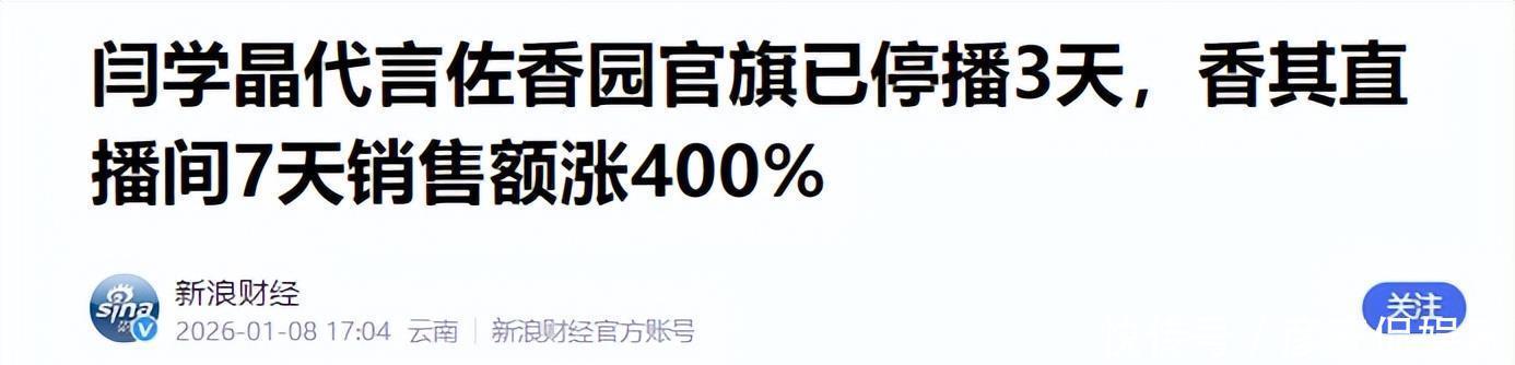 现在他们公司的法务部门都已经启动了,正在紧急评估这份代言合同带来的损失。有哭的就有笑的,市场就是这么现实,就在佐香园被推上风口浪尖的时候,它的直接竞争对手香其大酱,却迎来了好事。大量被闫学晶言论激怒的消费者,浩浩荡荡地涌进了香其的直播间,根据第三方平台的数据,那几天香其的直播间人气和销售额直接飙升了400%。